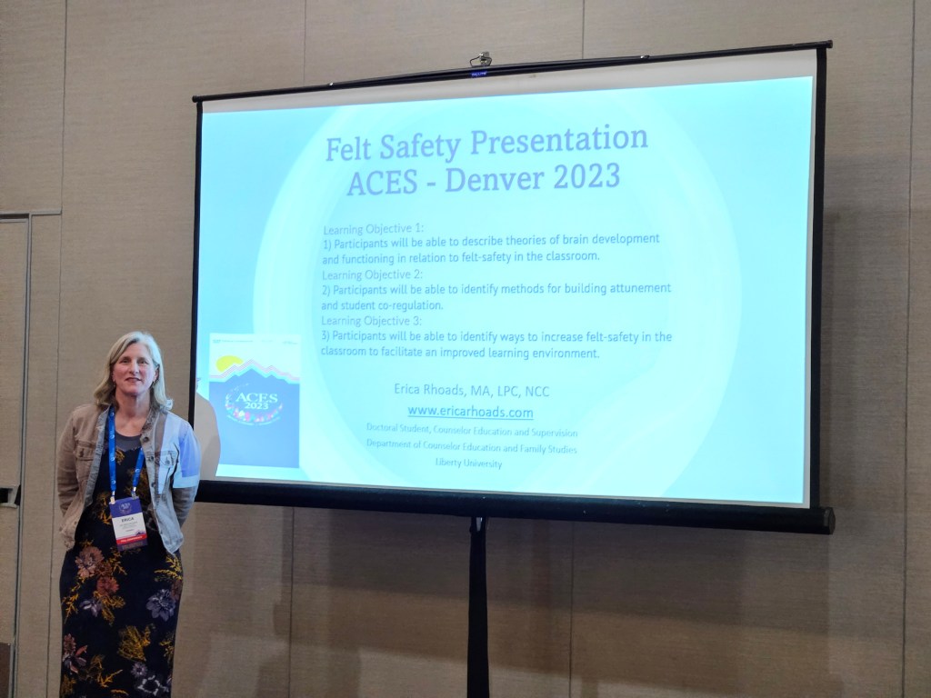 The ACES Conference in Denver was the most stressful as this Felt Safety presentation was national level for other Counseling Professors. Dr. Kristy Ford was so kind to attend and take my picture (see above). She encouraged me with compliments after the session.