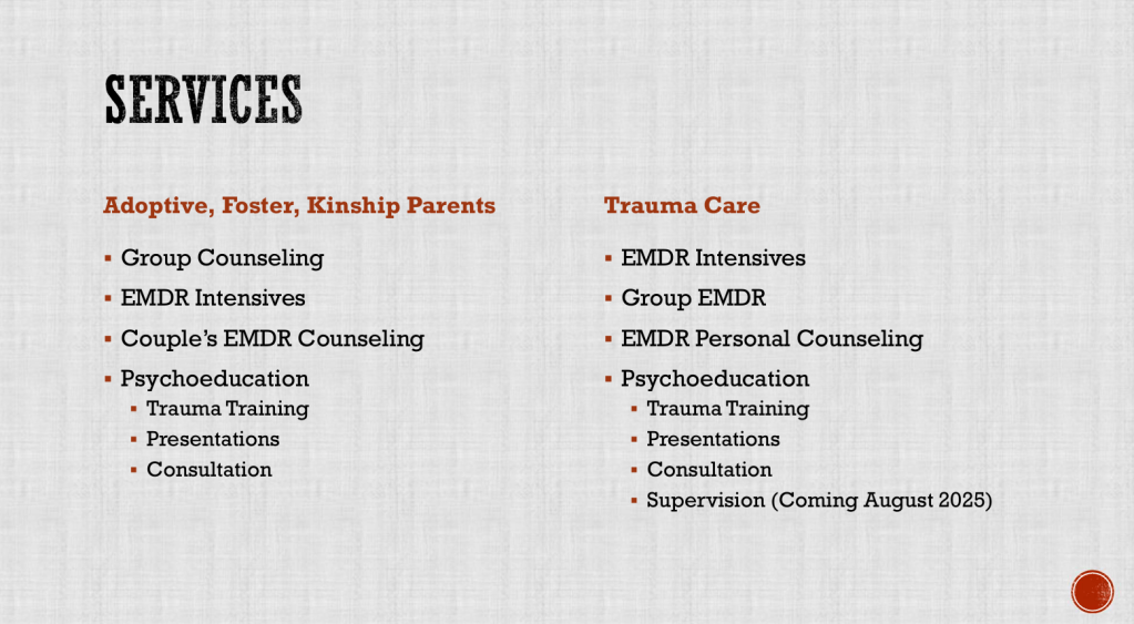 Erica is a Licensed Professional Counselor and adoptive mom with over 10 years of experience in the adoption community. She is passionate about helping adoptive parents make sense of their children’s difficult behaviors. She has studied trauma, attachment, interpersonal neurobiology, and has training in EMDR. She desires to help other parents who feel that their lives have been challenged by the trauma of their adopted children. She also hopes to help parents understand the developmental and emotional impact of trauma on children and provide tools to help them navigate parenting in unchartered waters and heal from the wounds of parenting in what often seems a battleground.